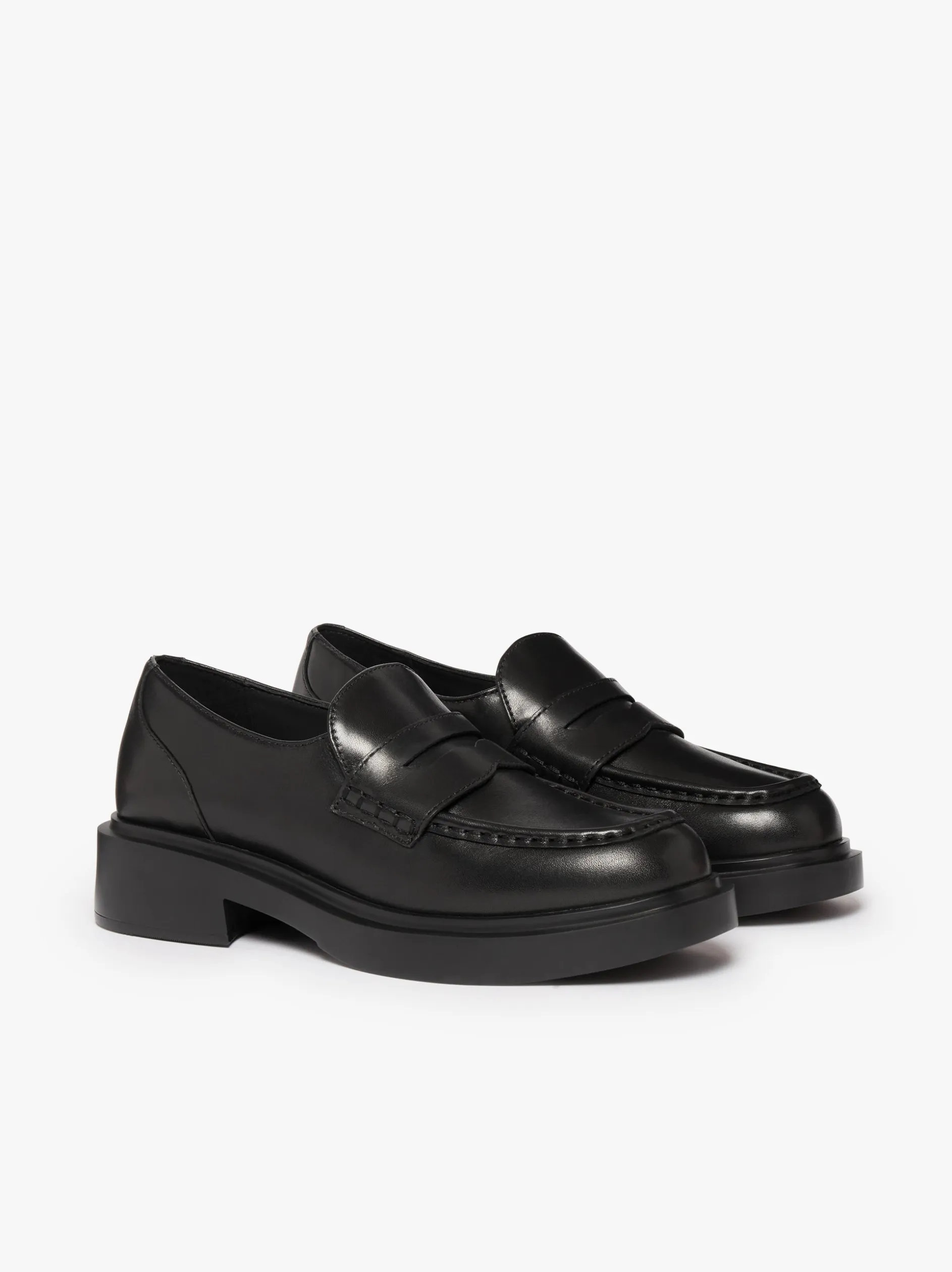 A modern update to a timeless icon, the Albany II Penny Loafers in black leather deliver a sleek, polished look. Crafted from soft nappa leather, they offer a supple feel while maintaining a sharp silhouette. A cushioned insole and lightweight construction provide all-day comfort, carrying you effortlessly from morning to night. The chunky rubber sole and low block heel add subtle lift. A classic block-heel loafer that pairs with just about everything in your wardrobe.