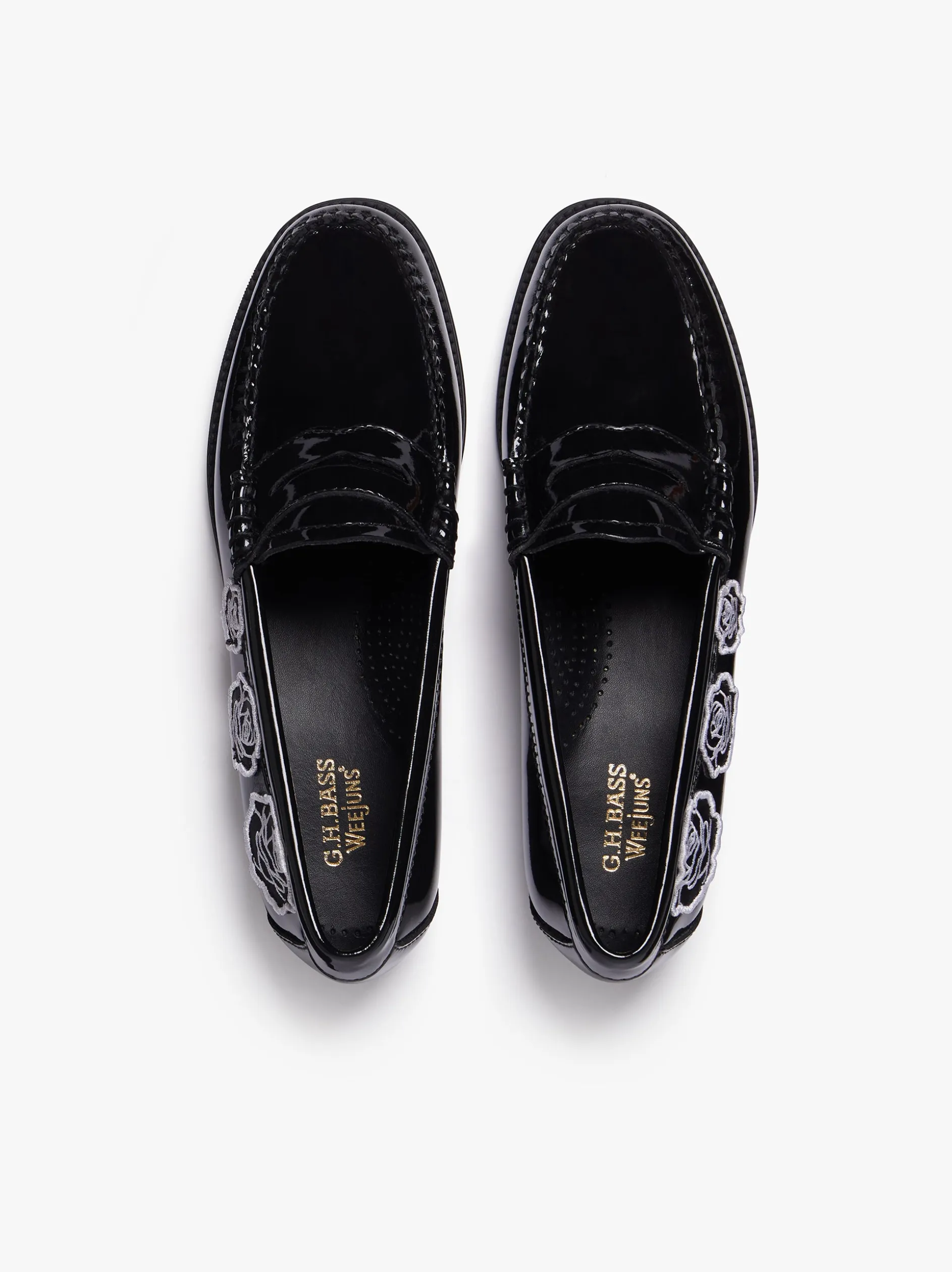 Easy Weejuns Penny Flora Loafers Black Patent Leather