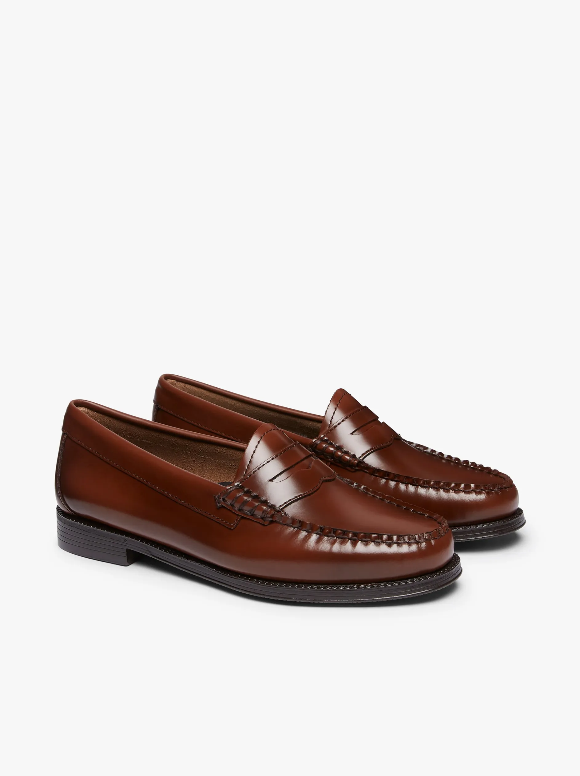 Womens cognac leather Penny Loafers from G.H.BASS, uniting forward thinking with heritage design. These smart shoes are crafted from cognac polished leather for a sophisticated finish, and are hand sewn to replicate techniques used on the first Weejuns in 1936. The Easy Weejuns style of these loafers prioritises comfort and versatility. With a soft, flexible rubber sole, you can rely on a durable style to wear all year round, while the spring-action technology and inbuilt cushioning provides the comfort of a trainer. Guaranteed for a lighter, more cushioned step with every wear, this style is set to be an indispensable addition to a working wardrobe.