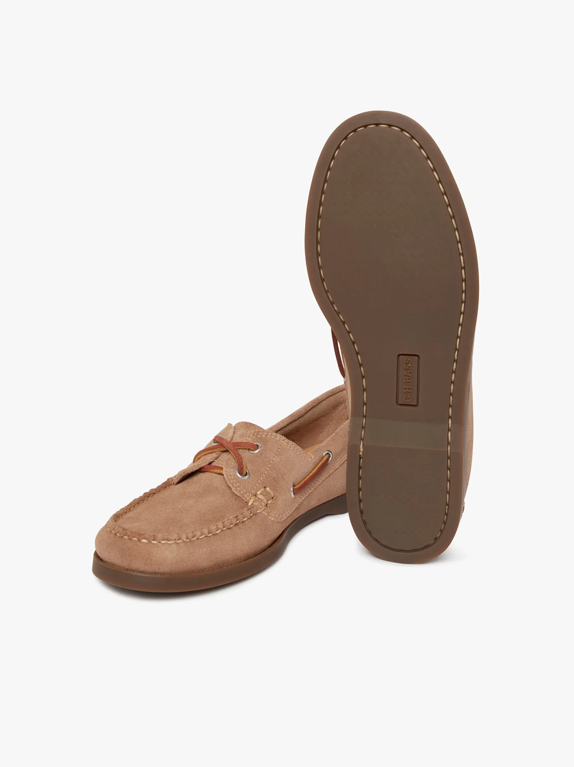 The Jetty II 2 Eye Boat Shoes in a soft earth suede redefine how sophisticated boat shoes can be. Designed to mould to the shape of your feet, they provide you with the utmost comfort. The cushioned insole and breathable interior are perfect for warm-weather getaways, whether you’re strolling through sunny city streets or unwinding at warm-weather gatherings. The rubber sole provides an added layer of durability while the leather laces, hand-stitched detailing, and the signature woven BASS flag add a statement of understated luxury. Pair them with lightweight linen for a modern look, or style them with chinos and a light-coloured shirt for a smart summer outfit.
