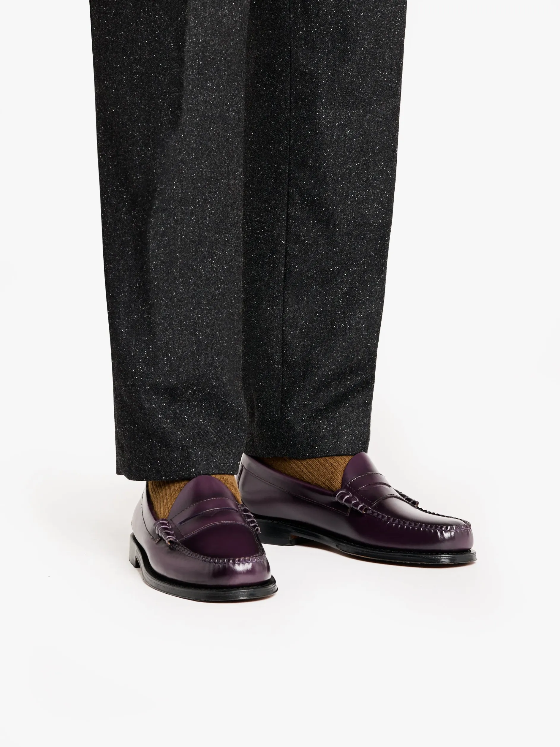 A classic design with a modern twist. These penny loafers are crafted from smooth, polished plum leather. These Weejuns stay true to our heritage silhouette while the rich plum hue introduces a refined, fashion-forward edge. A cushioned insole ensures exceptional comfort, while the polished leather sole with it’s protective rubber heel tap, adds an extra layer of durability. Designed for both formal and casual events, these loafers offer an unexpected sharp touch to any outfit. Pair with anything from denims to your office tailoring, or add an unexpected edge to your formal attire.