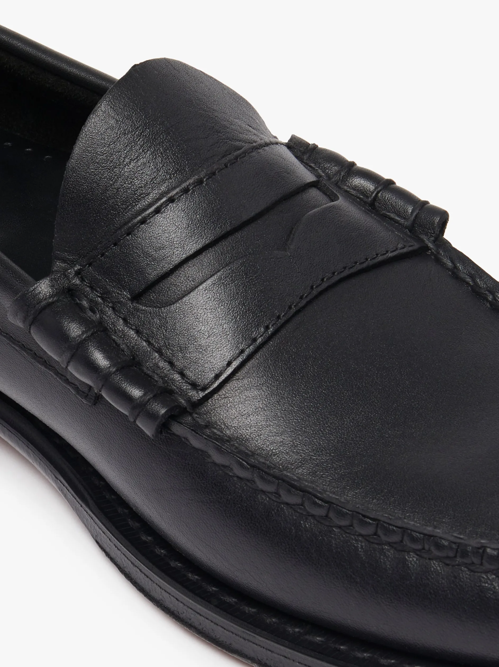 The original penny loafer returns crafted from the softest full grain black leather that moulds to the wearers foot over time for character and comfort. Set on the slim leather sole, this is a refined shoe with a timeless profile that adds versatile elegance to outfits; dress yours as easily with black, boxy trousers and a relaxed shirt as with the favourite traditional office tailoring.