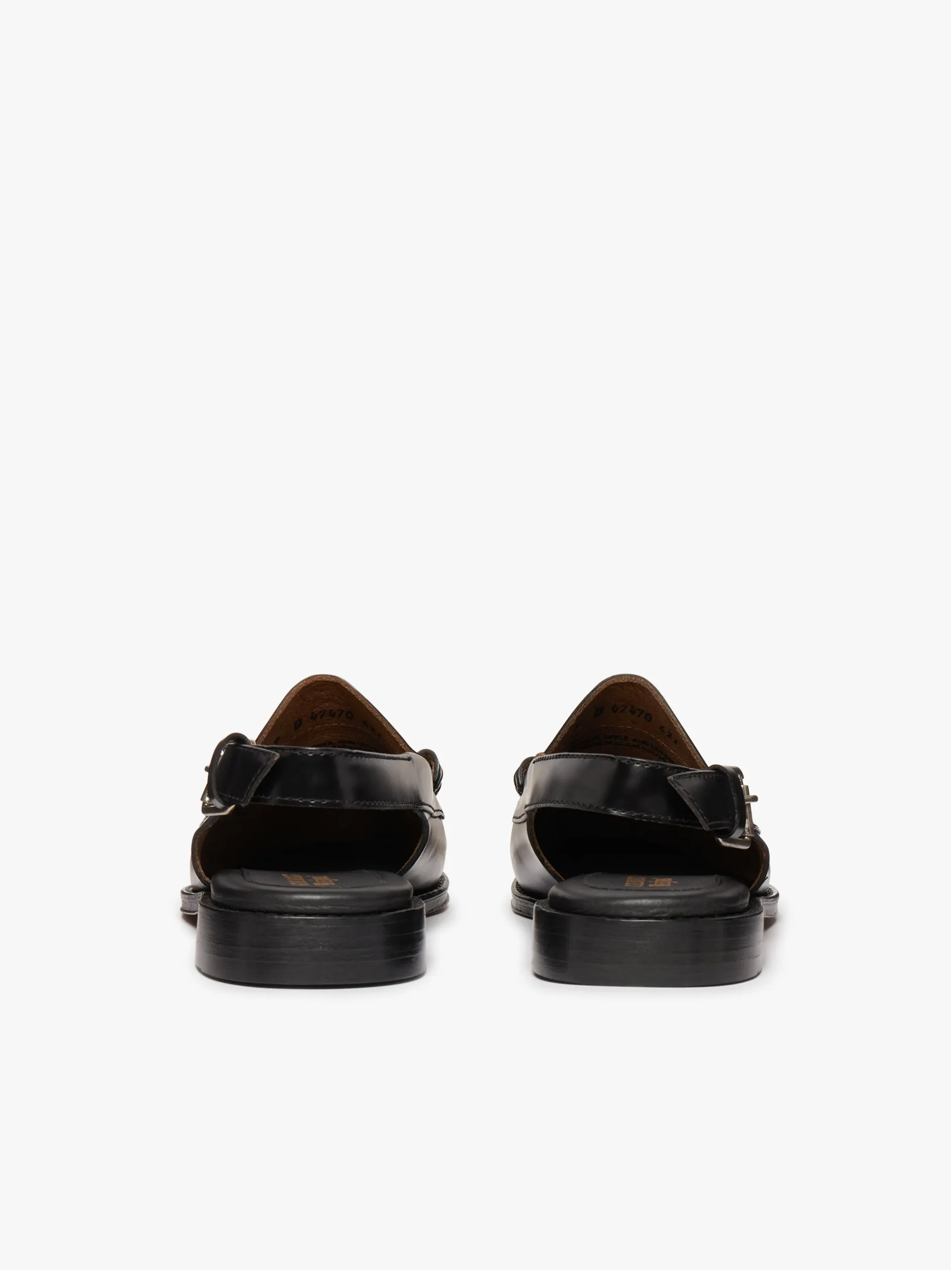 Meet the reinvention of a classic: the Weejuns Larson Penny Slingback loafer in polished black leather. The sharp, timeless silhouette of a traditional men’s loafer with an unexpected slingback strap. A lightweight and extremely versatile style with signature handsewn stitching and classic leather sole. This is the black leather slingback loafer for men who love an innovative take on traditional styles. A versatile warm-weather shoe that plays well with chinos, denim and shorts.