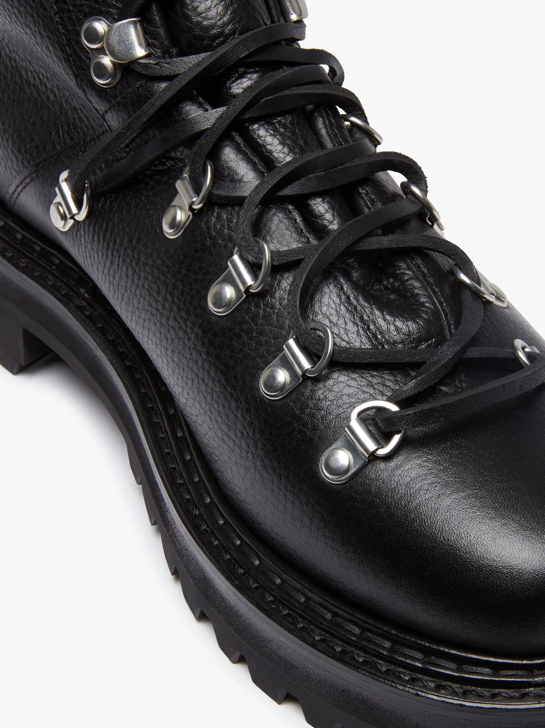 Crafted from rich black tumbled leather with a rugged, ski-inspired silhouette, the Mason Alpine Boot redefines winter style with everyday versatility. This heritage design features round lace hooks, durable woven laces, and a water-resistant EVA lug sole engineered for superior traction. Inside, ultra-soft, breathable leather linings and cushioned insoles deliver day-long comfort. Requiring no breaking-in, these men’s boots are ideal for city streets, weekend escapes, or adding a smart finish to your denims.
