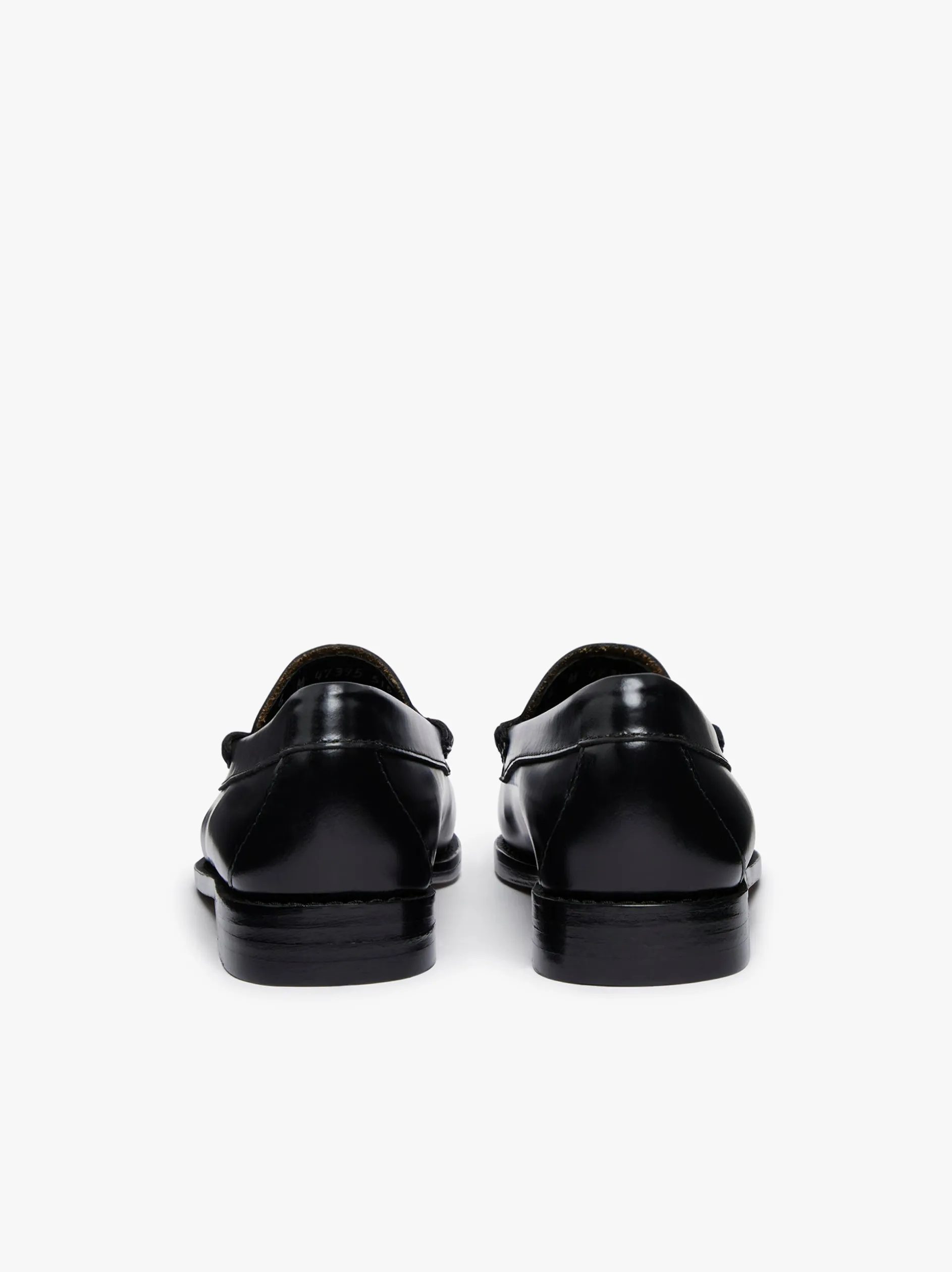 The Weejuns weave penny loafers are an instant classic. The shining sleek black leather is complemented by a new subtle weave detail. The gold foil branding adds a hint of luxury while the cushioned heel and soft leather lining provide lasting comfort for all-day wear. An anti-slip rubber heel tap offers the loafer with reliable traction that ensures sure footed quality and stability. Perfect for work or weekends, the Weejuns penny Weave will add instant charm to any outfit. A versatile loafer that is easy to dress up and down, try pairing with your favourite denims, dresses and skirts.