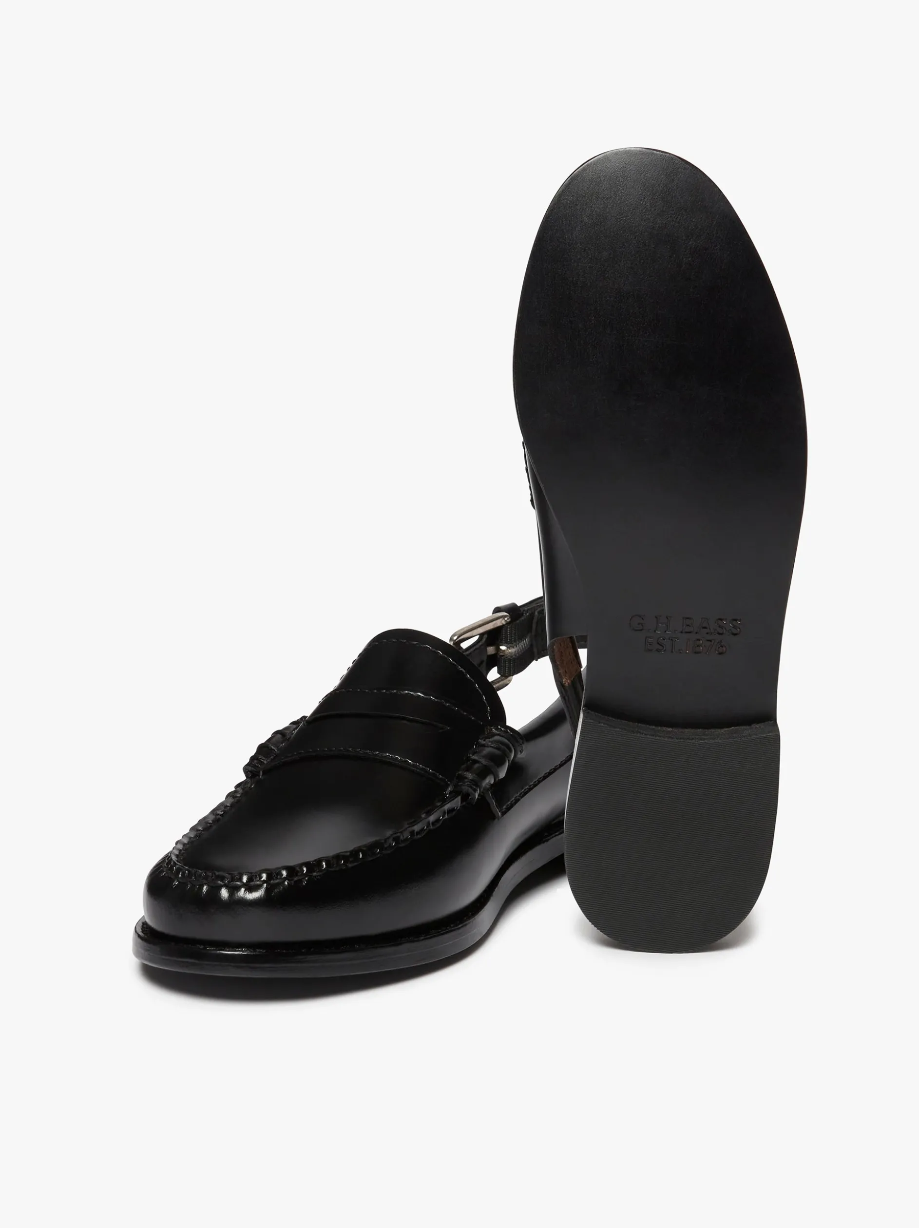Discover the women’s Weejuns slingback penny loafers. Crafted from polished black leather with an adjustable buckle strap for a secure fit and a stylish accent. These slingback loafers are perfect for both casual outings and smart occasions. A lightweight style with a cushioned insole for day-long comfort. With durable welt stitching and an anti-slip rubber heel tap, these slingback shoes are built to last, ensuring they remain a staple in your wardrobe for years to come. Pair with tailored trousers or flowing skirts to embrace a chic, contemporary look.